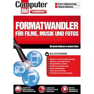 Formatwandler für Filme, Musik & Fotos! Musik, Hörbücher, Videos, Fotos und Dokumente immer im richtigen Format! Das kennt jeder: Ein Video läuft bei Ihrem Nachbarn prima, doch auf dem eigenen PC gibt’s nicht mehr als eine Fehlermeldung. Bei Bildern und Musik ist das leider nicht anders. Grund sind die vielen konkurrierenden Dateiformate. Was es damit auf sich hat und wie Sie Probleme verhindern, verrät Ihnen das beiliegende Handbuch. Dort finden Sie auch die Anleitungen für die wertvollen Programme auf der CD. Das Software-Paket hilft Ihnen dabei, Ihre Dateien einfach ins Wunschformat umzuwandeln. Teaser: Formatwandler für Filme, Musik & Fotos!nInhalt: Musik, Hörbücher, Videos, Fotos und Dokumente immer im richtigen Format!Das kennt jeder: Ein Video läuft bei Ihrem Nachbarn prima, doch auf dem eigenen PC gibt¿s nicht mehr als eine Fehlermeldung. Bei Bildern und Musik ist das leider nicht anders. Grund sind die vielen konkurrierenden Dateiformate. Was es damit auf sich hat und wie Sie Probleme verhindern, verrät Ihnen das beiliegende Handbuch. Dort finden Sie auch die Anleitungen für die wertvollen Programme auf der CD. Das Software-Paket hilft Ihnen dabei, Ihre Dateien einfach ins Wunschformat umzuwandeln.nBetriebssystem: Windows XP/Vista/7nVerpackung: DVD VerpackungnCover: ecd265245d.jpg